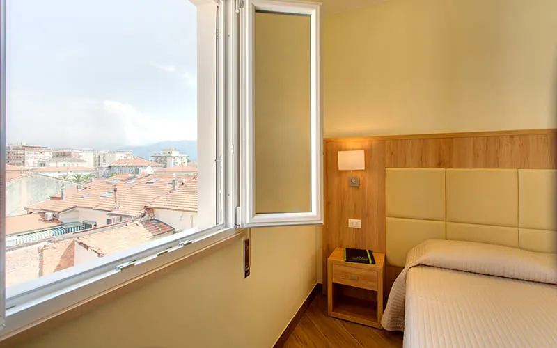 L’appartamento bilocale, servito di ascensore, si trova al piano più alto della struttura (Hotel Biagi sito fronte mare) e ha una terrazza panoramica con una splendida vista sul mare laterale e sul centro di Lido di Camaiore.