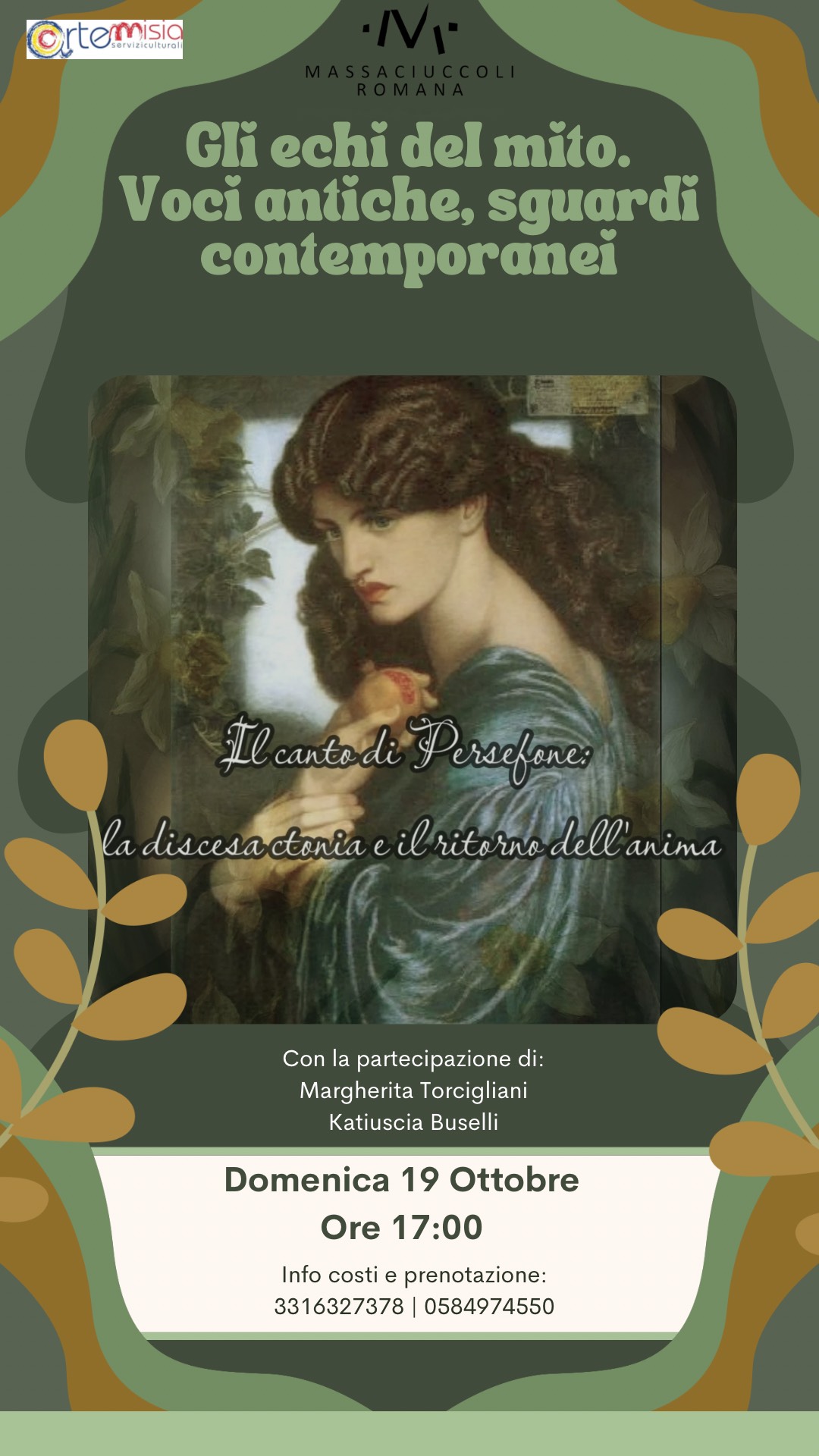 La storia di Persefone, anche nota come Core, è un mito centrale della mitologia greca che spiega l'origine delle stagioni. Persefone, figlia di Demetra e Zeus, venne rapita da Ade, dio degli Inferi, che la volle come sua sposa.Un mito toccante, che verrà interpretato da:Margherita TorciglianiKatiuscia Buselli Un’occasione unica per lasciarsi trasportare in un viaggio tra mito e leggenda, all’interno di uno dei luoghi più suggestivi del territorio.Per info, costi e prenotazioni:📞 331 6327378 | 0584 974550